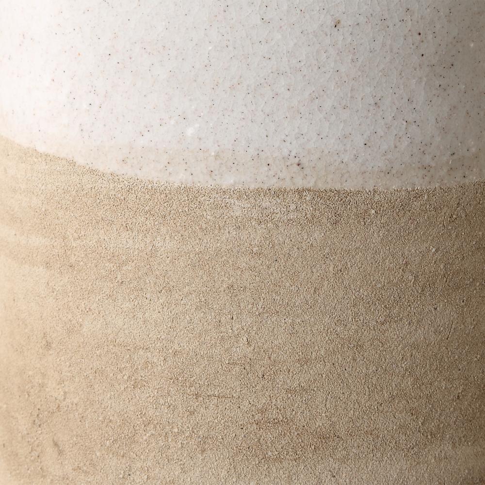Perfectly Paired, These Crackled White Ceramic Vessels Are A Harmonious Duo. The Sandy Textured Base Adds A Tactile Dimension, Invoking The Serene Ambiance Of Coastal Landscapes. Sizes: S- 5x19x5, L- 5x23x5