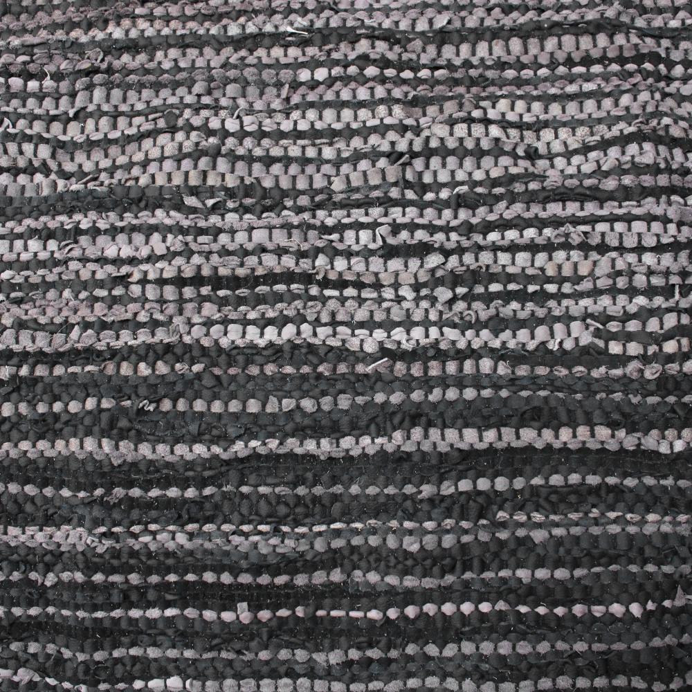 This Hand Woven Rug Features Rescued Leather in Shades of Taupe and Rustic Charcoal Displaying An Ombre Effect.