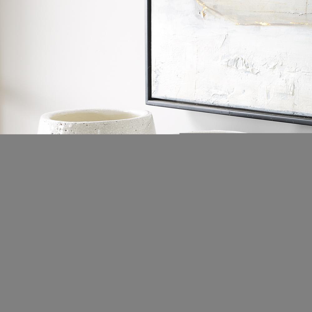 Elevate Your Home Decor With This Set Of Two Crackled Ceramic Vases. Finished In An Aged White And Adorned With Blue And Gray Mingling At The Base, These Vases Add A Modern Flair To Any Setting. Their Unique Textures And Colors Make Them Ideal For Displaying Floral Arrangements Or As Striking Decorative Accents. Sizes: S-7x5x7, L-8x6x8