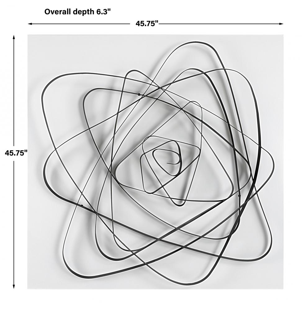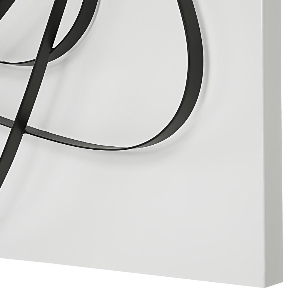 Crafted From Solid Iron, This Square Wall Panel is Finished in Matte White with An Abstract Central Design in Matte Black. May Be Hung Horizontal or Vertical.