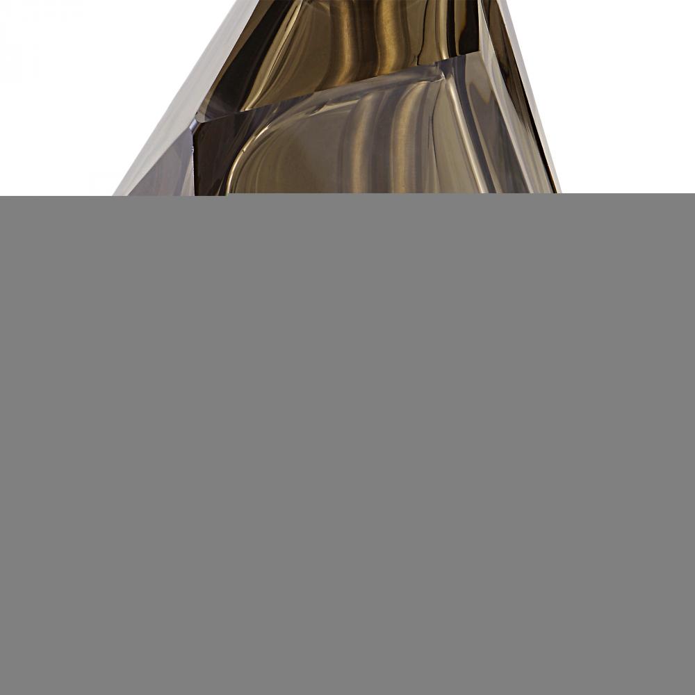 Set of Two Candleholders Showcase A Contemporary Feel with Geometric Silver Glass Accents and Brushed Nickel Finished Bases. Two 3"x 3" Distressed White Candles Are Included. Sizes: S-5x14x5, L-5x17x5