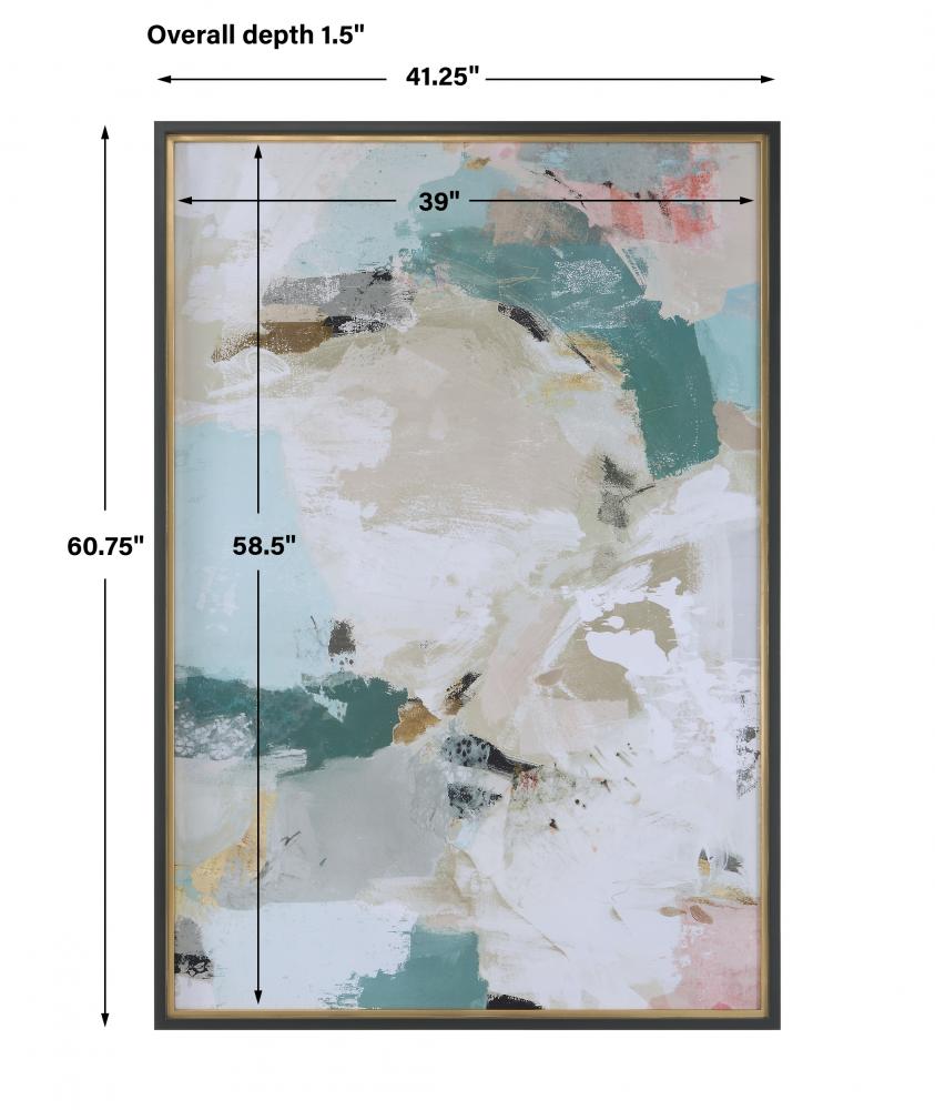 A Striking Addition to Any Contemporary Design, This Bold Print Finds The Perfect Balance of Color and Abstract Composition. Neutral Hues Are Accented By Pops of Teal and Blush with Gold Leaf Highlights, Accentuated By A Dark Espresso and Metallic Gold Leaf Frame. May Be Hung Horizontal or Vertical. Artwork By Isabelle Z.