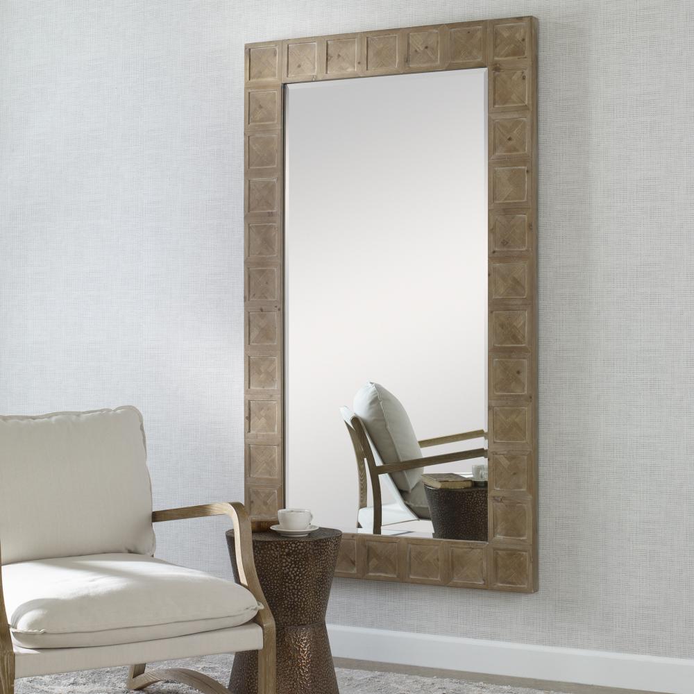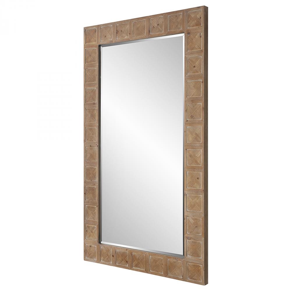Lending Itself to Rustic Lodge and Farmhouse Styles, This Rectangular Mirror is Crafted From Solid Fir Wood with Crossed Inlay Details Around The Frame and A Light White Wash That Accentuates The Natural Wood Grain. Mirror Has A 1 1/4" Bevel and May Be Hung Horizontal or Vertical. Due to The Nature of Natural Materials, Each Piece May Have Slight Variations.