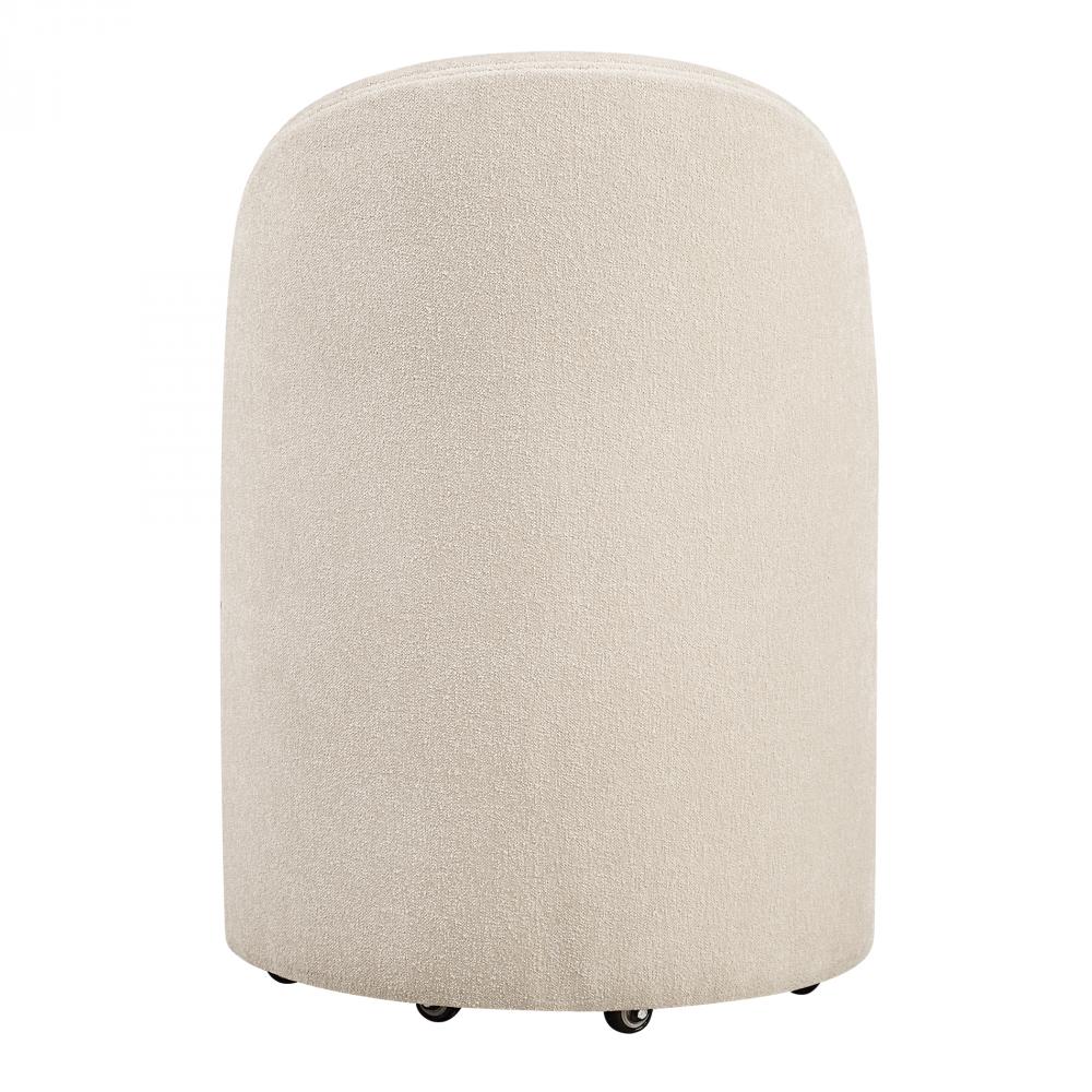 Inspired From Classic Vanity Seating But Proportioned For Dining, The Roll With It Chair Features Rolling Casters For Ease Of Use. Its Smooth Lines Are Fully Upholstered In A Textural Slubbed Polyester In Light Sand.