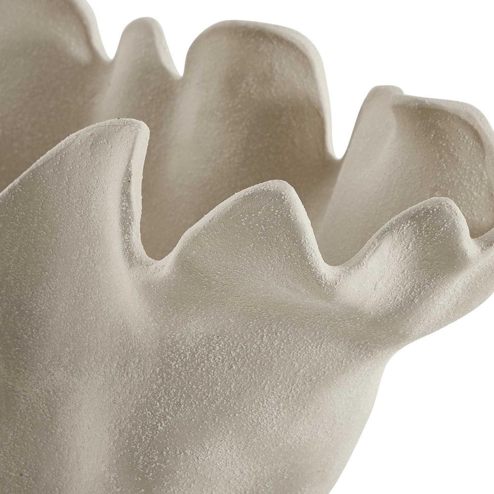 Inspired By The Beauty Of Ocean Corals, This Sculptural Sand-textured Ceramic Bowl Brings An Organic, Artistic Touch To Any Space. Its Fluid, Ruffled Edges And Natural Finish Create A Statement Piece That Complements Modern, Coastal, And Minimalist Settings. Safe For Outdoor Use, But Protection From Freezing Temperatures Is Recommended.