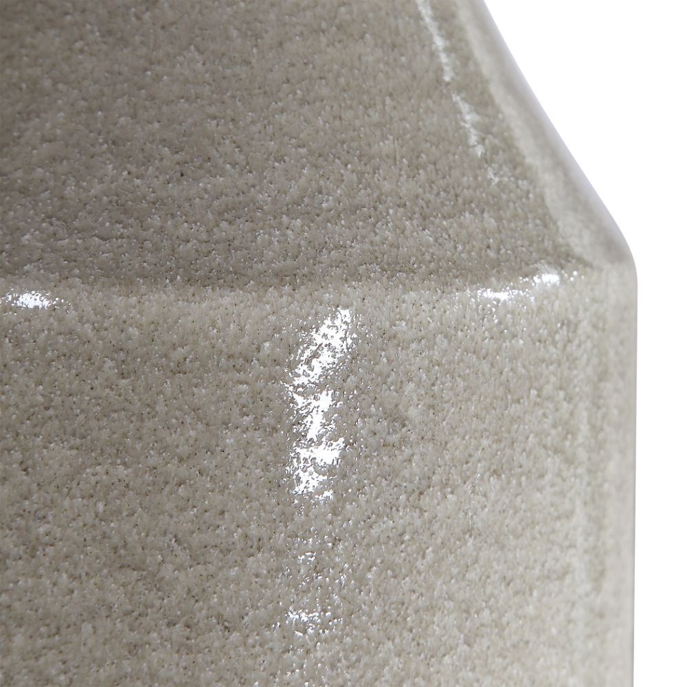 Showcasing A Bohemian Flair, This Ceramic Table Lamp is Finished in A Glossy Warm Gray Glaze That Transitions to A Heavily Textured Ivory Bottom. The Casual Contemporary Styling is Paired with Plated Brushed Nickel Accents. The Hardback Drum Shade is Light Gray Linen with Natural Slubbing.