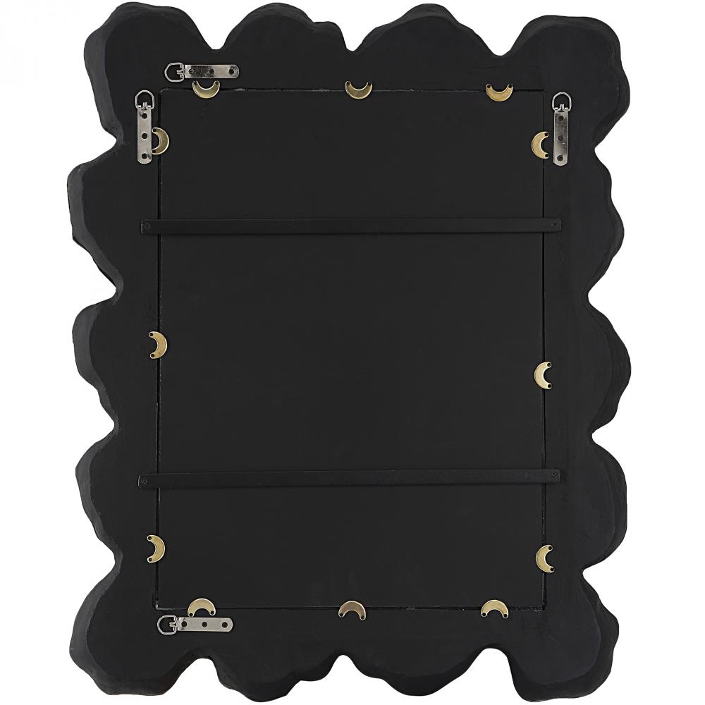 Reminiscent of Natural Black Coral, This Mirror Showcases A Contemporary Coastal Design. The Organic Shaped Frame is Finished in Black with Noticeable Waves and Texture. May Be Hung Horizontal or Vertical.