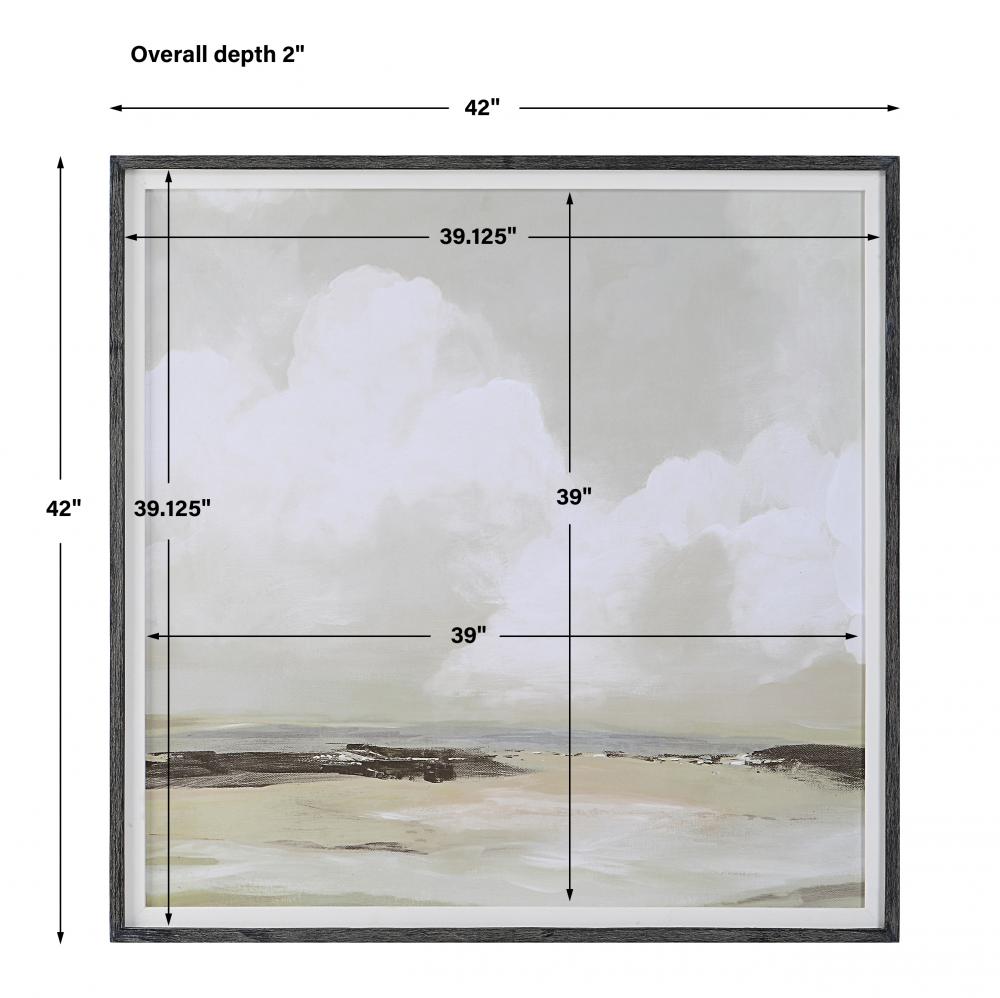 Understated and Serene, This Landscape Artwork Displays A Soft Color Palette That Beautifully Accents An Array of Designs. The Print is Accentuated By A White Linen Liner and A Pine Wood Frame Finished in A Dark Espresso Stain with Rich Wood Grain Texture. Artwork By PI Studio.