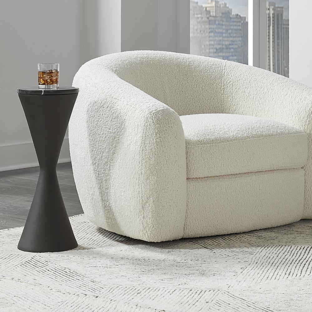 The Time's Up Table Brings Contemporary Flair to Your Space. The Modern Hourglass Shape is Finished in A Lightly Textured Matte Black and is Topped By Black Marble with Natural White Veining. Because of The Natural Characteristics of Marble, Each Piece Will Have Unique Veining Patterns.