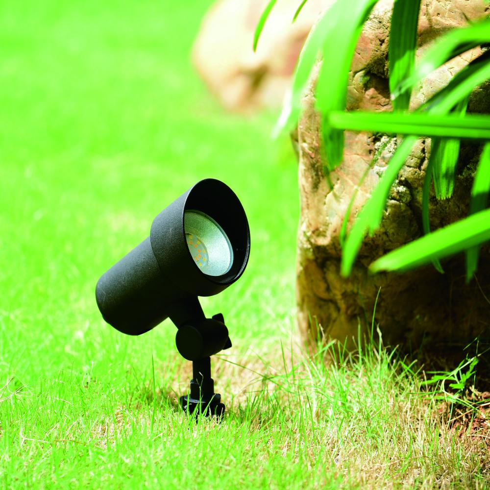 This contemporary low voltage landscape flood light with integrated LED is the perfect outdoor lighting solution. It offers functionality, energy savings, and security for your outdoor spaces. Rotate the single black light head vertically up or down to direct the light precisely where you need it. Bright 550 lumens of output plus three selectable color temperatures - 3000K warm white, 4000K bright white, 5000K daylight - allow you to choose the quality of brightness. Connect this stake spot light with other landscape lighting products to customize and highlight your outdoor spaces. Ground stake and connector cable included. Low voltage transformer required (sold separately).