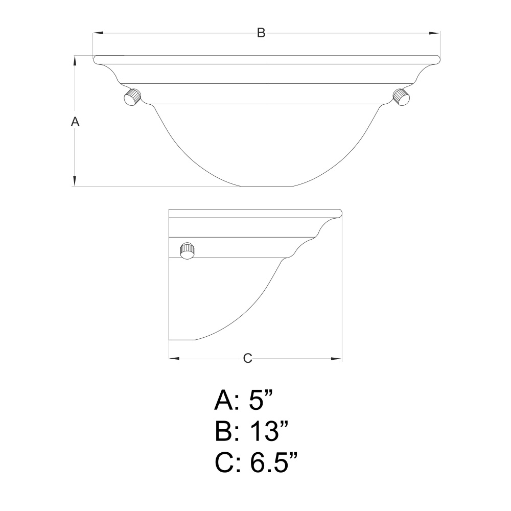 13-in W x 5-in H x 6.5-in D