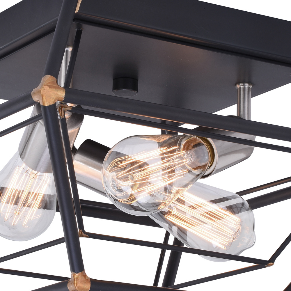 Showcasing a unique play on geometry, the Bartlett’s concentric shapes and open cage design pull you into its multiple layers of linear beauty. An oil rubbed bronze finish contrasts with touches of satin nickel and brass to highlight this industrial inspired collection. Combine that with vintage Edison style filament bulbs to complete the look. This flush mount ceiling light is ideal for hallways, living rooms, bedrooms, entryways.