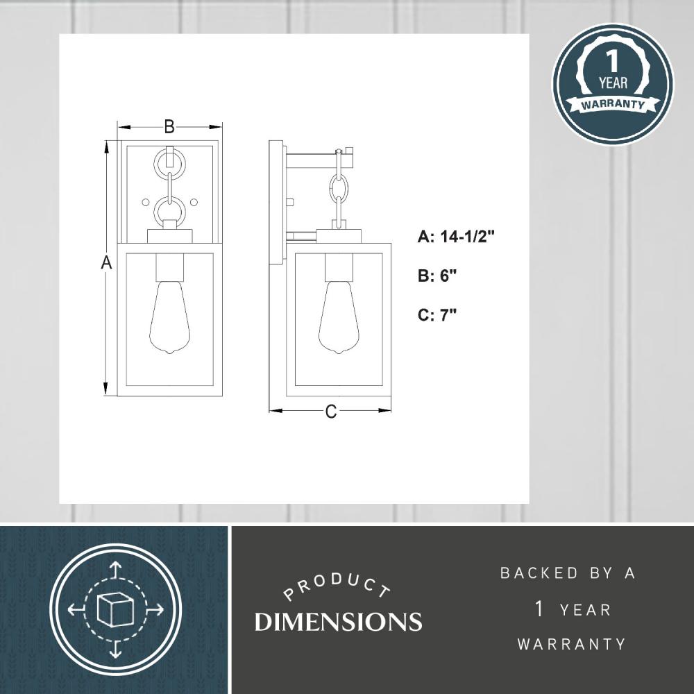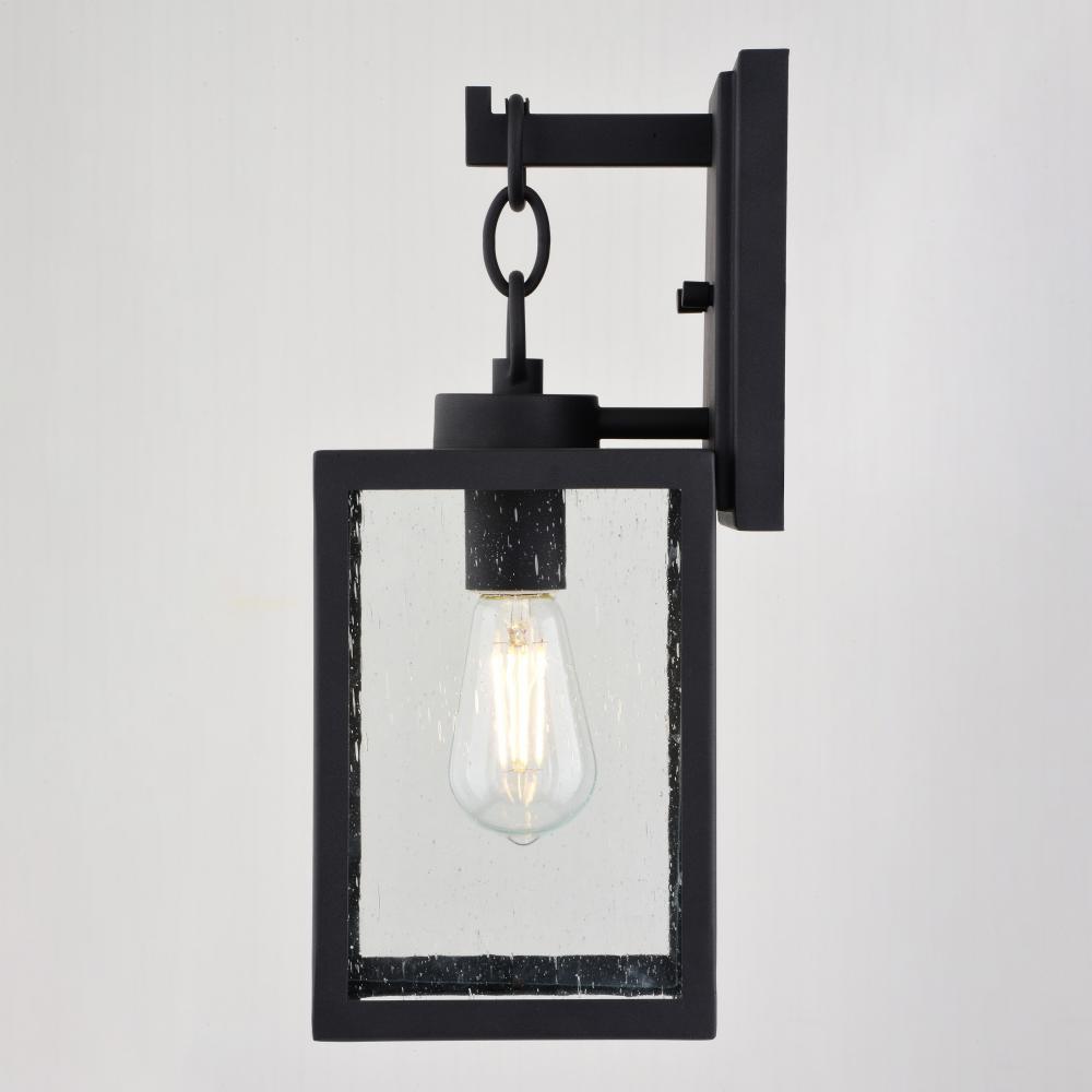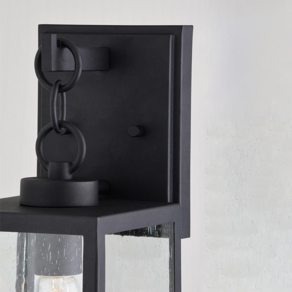 Add a touch of rustic industrial flair with the unique Barkley outdoor wall light. Its textured black finish, clear seeded glass, and chain handle feature create a distinctive artisan look. Perfect for entryways, patios, or any space where you want to create a bold statement.