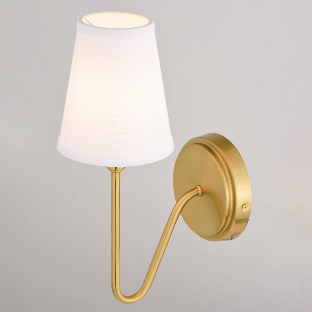 The Briar wall light is a timeless take on a traditional classic. The graceful curving arm supports a white linen fabric shade, adding a touch of elegance to any space in your home. Finished in muted brass, this wall sconce adds a touch of sophistication to your baths, hallways, or bedrooms alike.