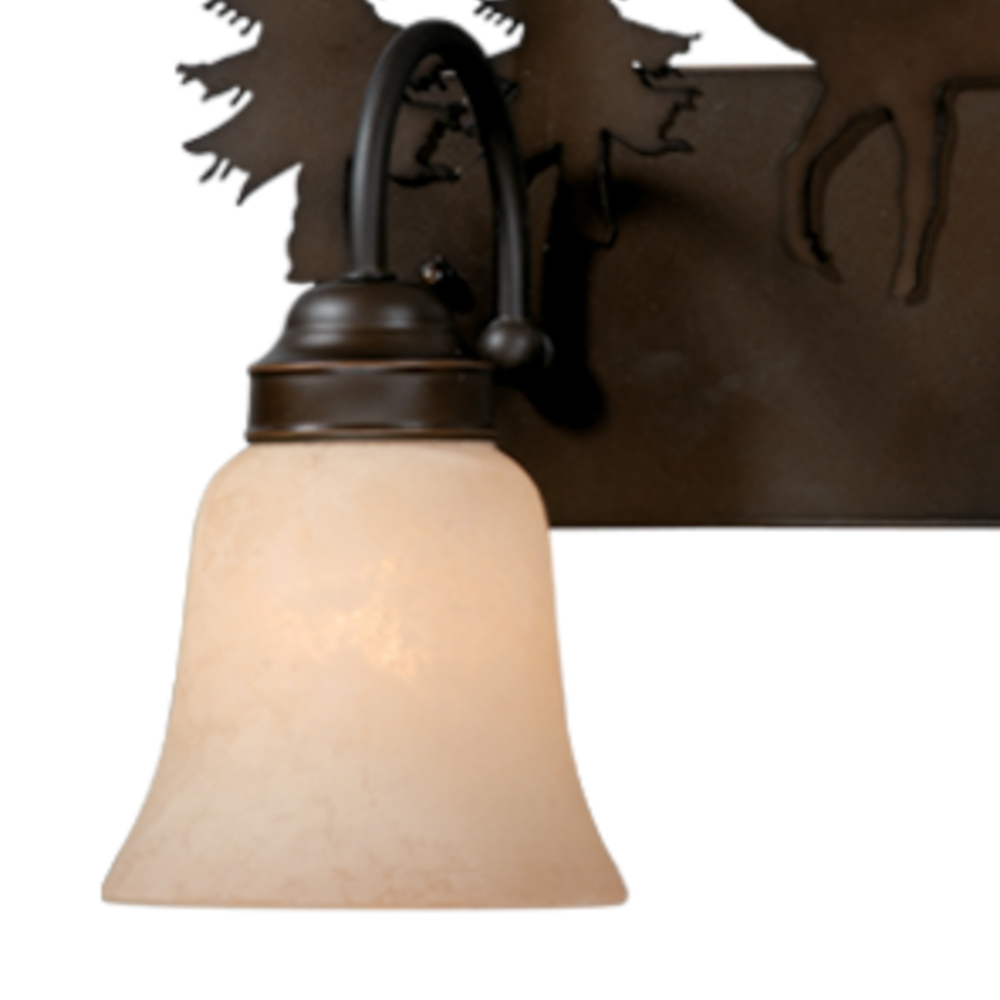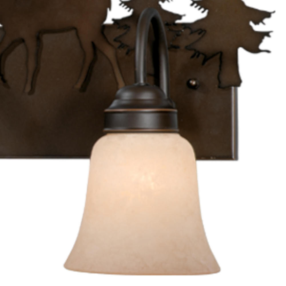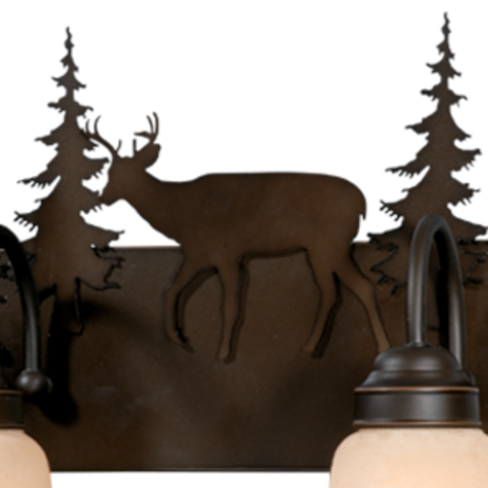 Evoking the spirit of the wilderness, this rustic themed light is clad in a burnished bronze finish and features silhouetted deer imagery atop glowing amber flake glass. The classic form of this lamp makes it a great choice for a vacation lodge, cabin or a suburban home - it will complement a variety of home styles: anywhere you want to bring an element of nature. Medium screw base lamping provides maximum light output, and flexibility in bulb choice.