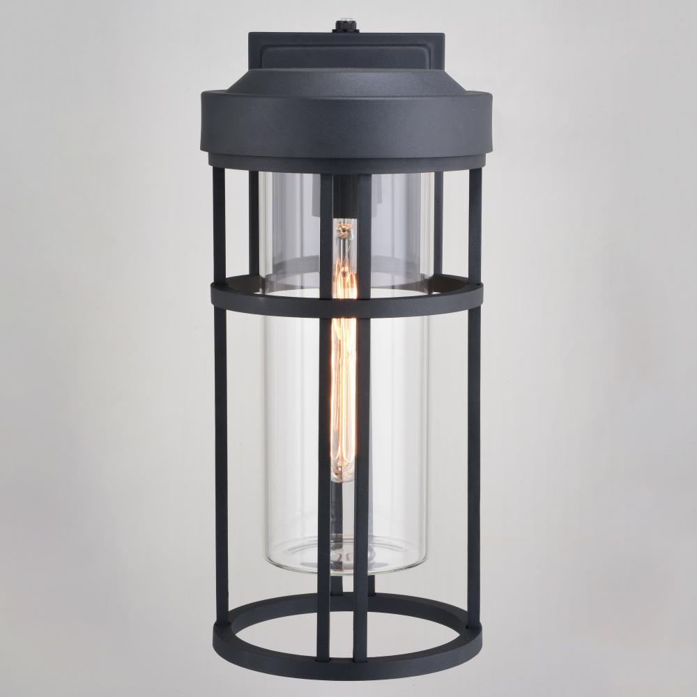 The Crestline's overall simple and minimal approach echo a sense of modernity and elegance, making it a fitting addition to your contemporary outdoor spaces. Cylinder-shaped clear glass is surrounded by a durable, corrosion-resistant aluminum frame finished in textured black to create an interesting windowpane vibe. It’s built-in dusk to dawn photocell automatically turns the light on at dusk and off at dawn, saving energy during daylight hours. This outdoor wall light is ideal for your porch, entryway, garage, or any other area of your home.