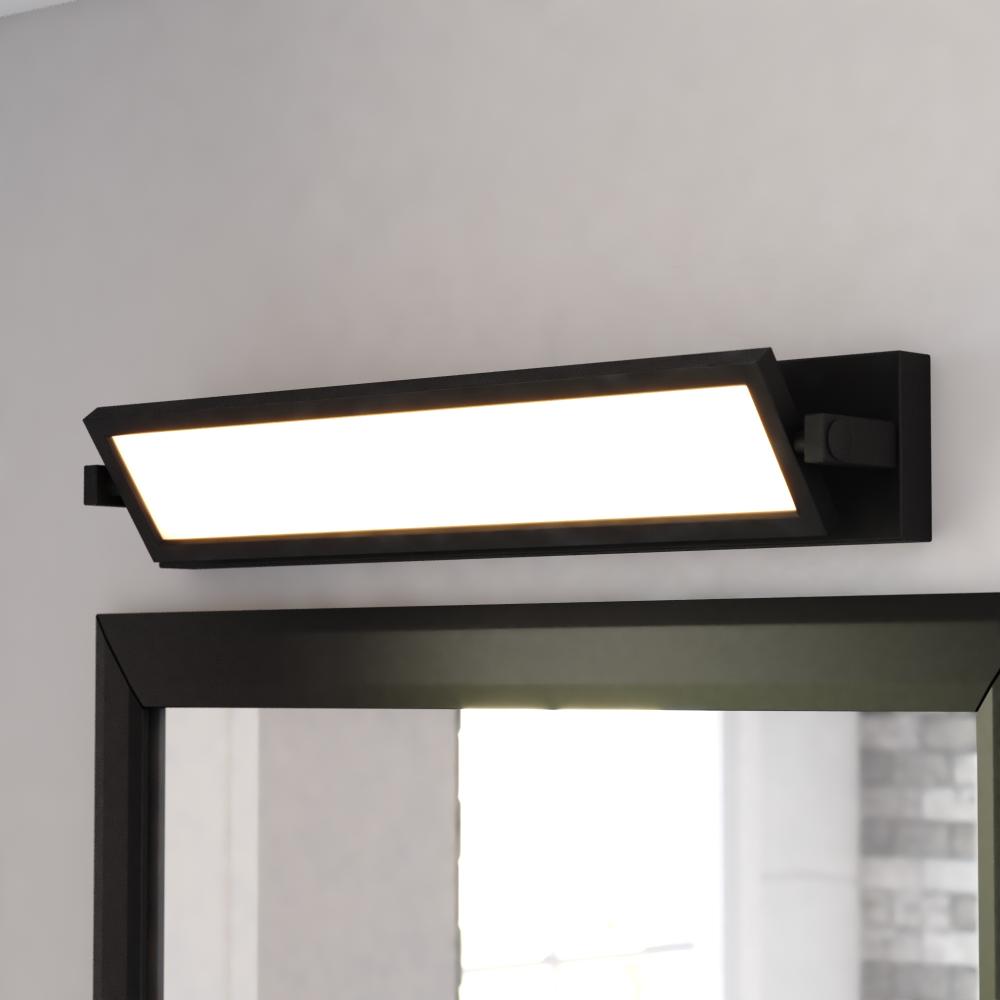 Enhance your bathroom with this sleek, contemporary Fremont LED vanity light. Its matte black finish and frosted acrylic shade provides bright, even light for a clean, modern feel in your bathroom. The full back plate makes for easy mounting, while the adjustable angles allow you to customize the lighting. Ideal for horizontal or vertical installation in your primary or secondary baths.