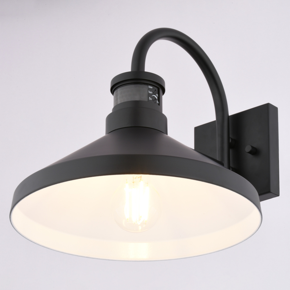 Highland Park 11.25-in. W Outdoor Motion Sensor Wall Light Matte Black and White
