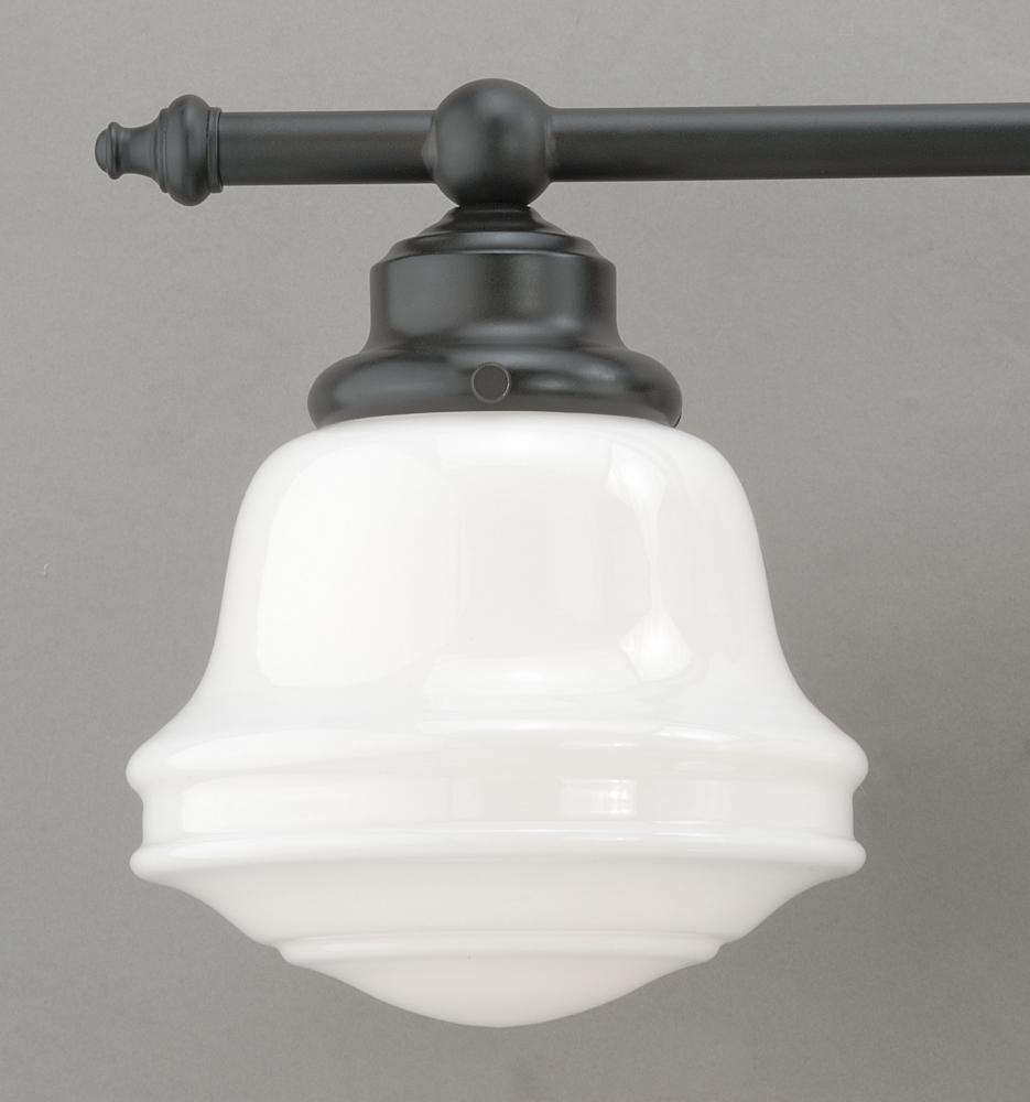 The Huntley is a timeless collection inspired by mid-century small-town aesthetics. The vintage school house glass is the focal point of this design with its unique profile and glass options. Offered in multiple finishes and glass options, this versatile farmhouse light will provide a unique accent to a variety of kitchen, dining, and bathroom settings. Medium screw base lamping provides maximum light output. The complete collection includes chandeliers, pendants, semi-flush ceiling lights, and 1, 2 3, and 4 light bathroom vanities.