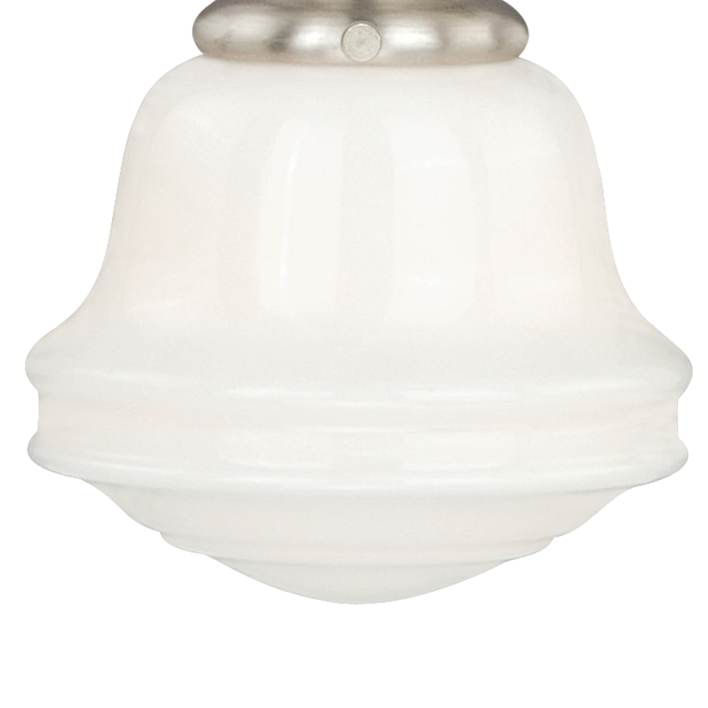 The Huntley is a timeless collection inspired by mid-century small-town aesthetics. The vintage school house glass is the focal point of this design with its unique profile and glass options. Offered in multiple finishes and glass options, this versatile farmhouse light will provide a unique accent to a variety of kitchen, dining, and bathroom settings. Medium screw base lamping provides maximum light output. The complete collection includes chandeliers, pendants, semi-flush ceiling lights, and 1, 2 3, and 4 light bathroom vanities.