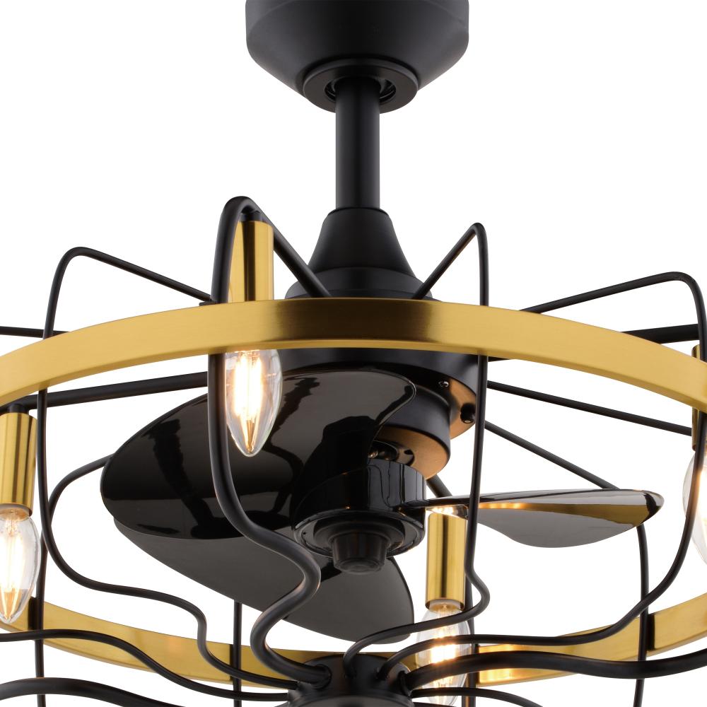 Elevate your contemporary space with the Kenton 21-in ceiling fan, blending industrial charm with modern sophistication. Its captivating cage frame, accented in satin brass on a black backdrop, adds a striking focal point to smaller spaces including family rooms, bedrooms, kitchens, or hallways. with remote control convenience, 3 speed settings, adjustable height, and included dimmable LED bulbs, this fan offers both style and functionality, ensuring lasting elegance and peace of mind for your home with safety certifications and a lifetime limited warranty.