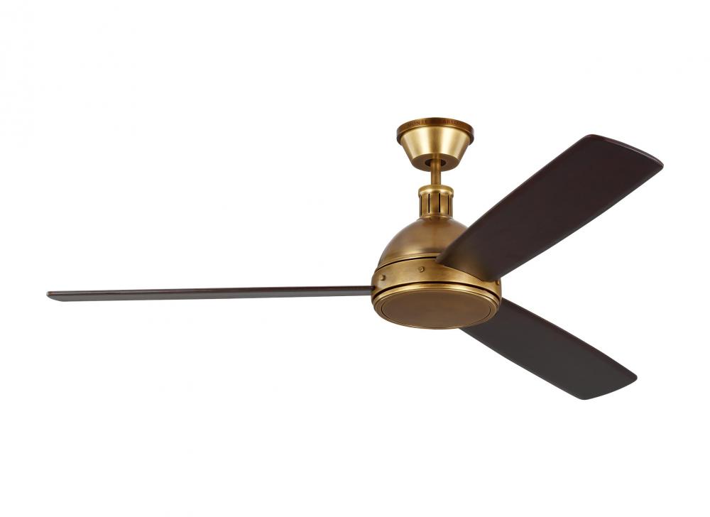 The Thomas O'Brien Hicks 60 in Hand-Rubbed Antique Brass features a 178.0 X 22.0 6 speed motor with a Thirteen degree blade pitch. Inspired by Thomas O’Brien’s Hicks vintage pendants, a new introduction of ceiling fans are flawlessly implemented with industrial charm. The beautifully shaped integrated LED shallow dome, while the signature metal band with rivet details becomes the spinning blade element. Available in two finishes.
