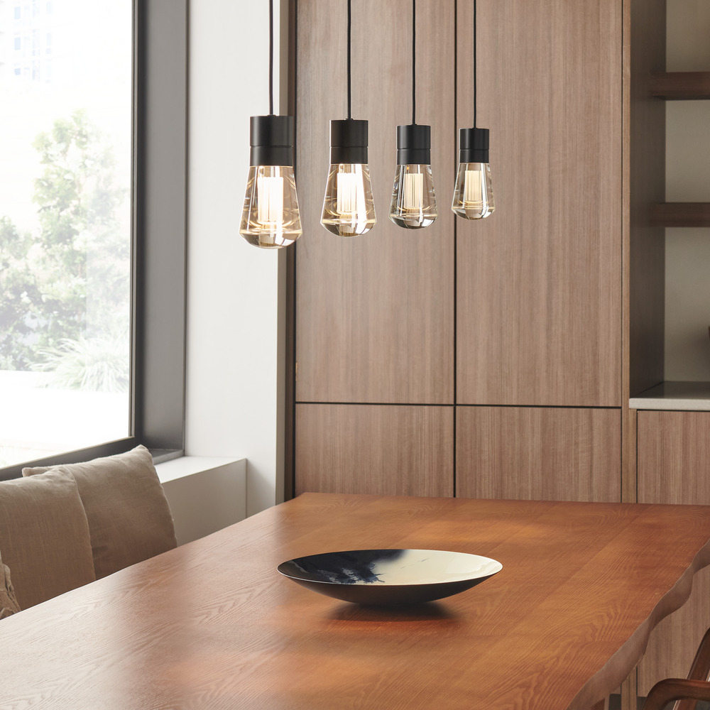 The Alva pendant, by Sean Lavin for VC Modern, is a classic Edison-style squirrel cage lamp reincarnated as a modern socket and cord-style LED pendant light. Alva features a powerful downward-firing LED that is smartly hidden within the in. then combined with a solid in. of pure optic crystal. Intricately detailed in. are laser-etched into the crystal for a visually intriguing light fixture. With a modern take on the cord-style trend Alva is customizable to your style. Choose from a lively combination of finishes and cord colors to match any decor in your kitchen, bathroom and living room. Also available as a 3-, 7-, and 11-lite chandeliers (canopy included).