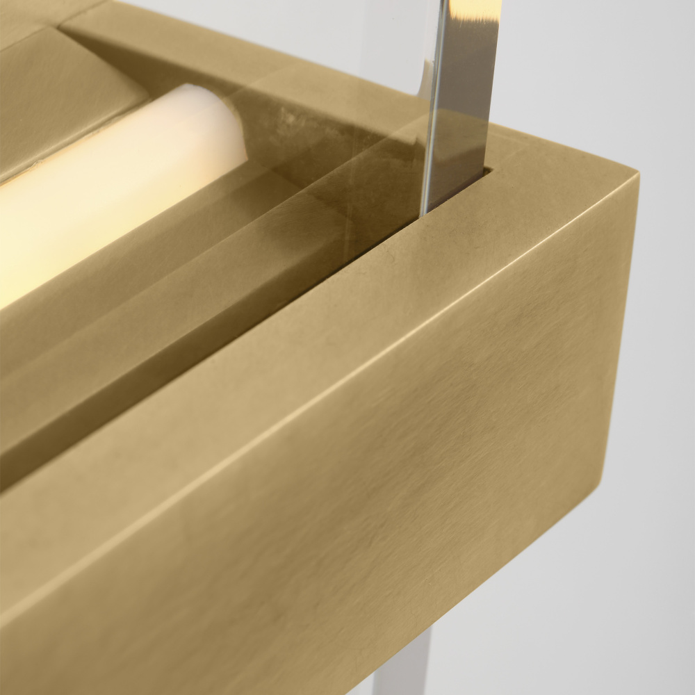 The Flyta Sconce by Sean Lavin brings a fresh and modern look to your home. The sharp-lined structure is constructed from durable aluminum and features a slender glass panel ahead of its light source. Within the cubed backplate is its integrated LED lamping that emits a warm light through a glass diffuser. The streamlined design and 3.3-inch depth make a huge impact while leaving room on your walls for other decorations and self-expression.