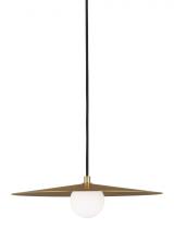 The Pirlo pendant by Sean Lavin for Visual Comfort Modern contrasts a flattened metal shade with a frosted glass globe, creating the quintessential Mid-Century modern look. The metal shade directs light downward for illuminating surfaces. The shade is scaled at 22" diameter, making this pendant a sharp design piece for your living room, dining room, kitchen, and foyer. Offered in modern finishes, with and without lamp. Lamping options are compatible with most dimmers. Refer to the Dimming Chart for more information.
